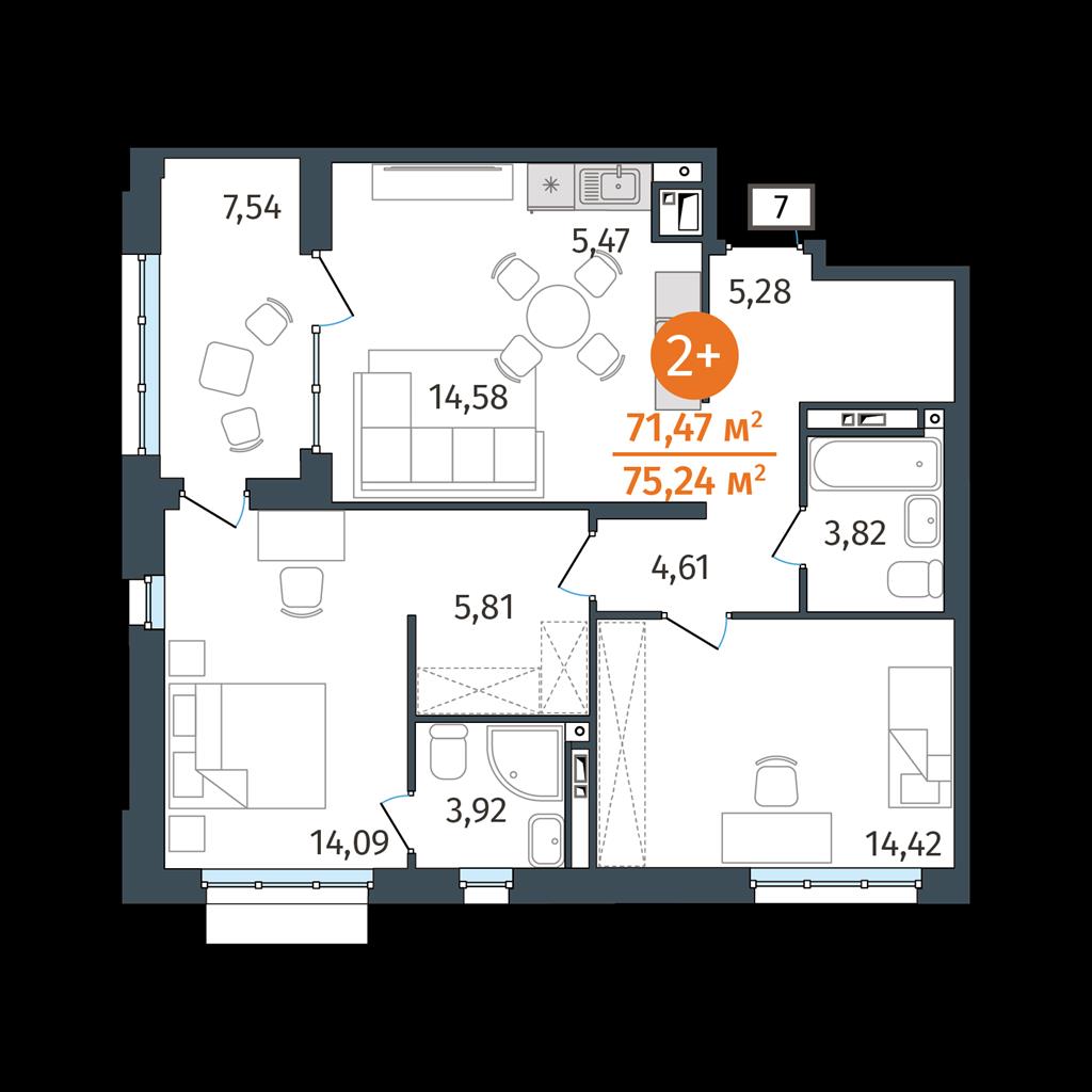 10 544 000 р. (147 530 р./м2) Подать заявку на ипотеку |