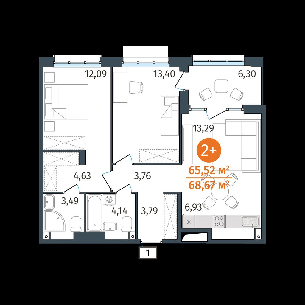 общая 65,52 м2, жилая 0 м2, кухни 6,93 м2 |