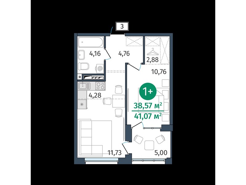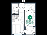общая 38,57 м2, жилая 0 м2, кухни 4,28 м2 |