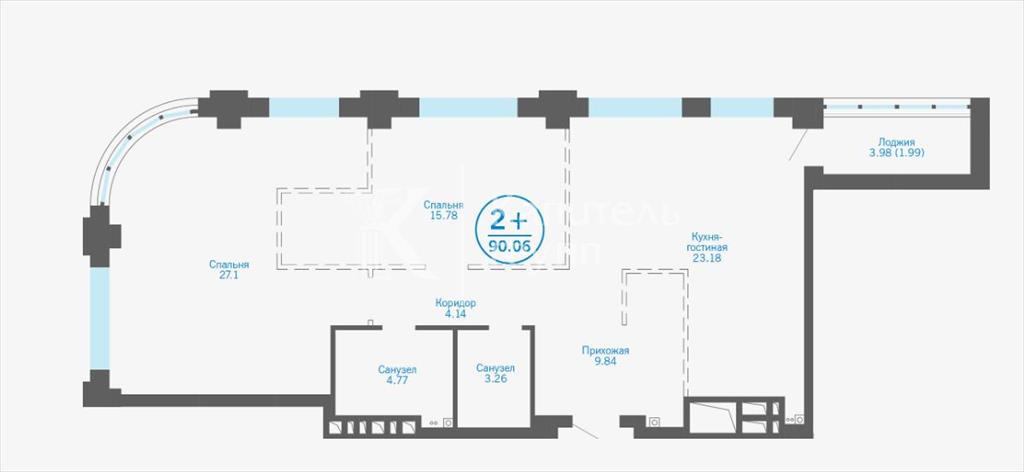 Двухкомнатная квартира 90,00 м2 по ул. Пожарных и Спасателей 1к1 за 12200000 руб. |