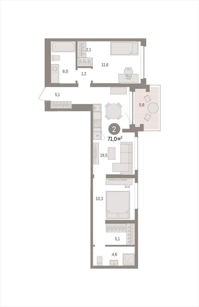 Двухкомнатная квартира 71,02 м2 по ул. Муравленко 9к3 за 12330000 руб. |