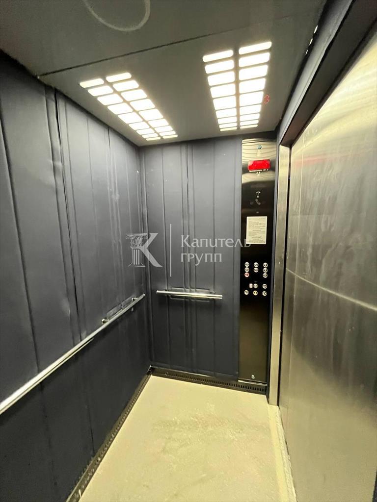 В квартире одна комната, жилая площадь составляет 13 м², площадь кухни — 14 м². Всего на площадке четыре квартиры, есть раздельные пассажирский и грузовой лифты. Горизонтальная разводка отопления, кирпичные стены.<br />