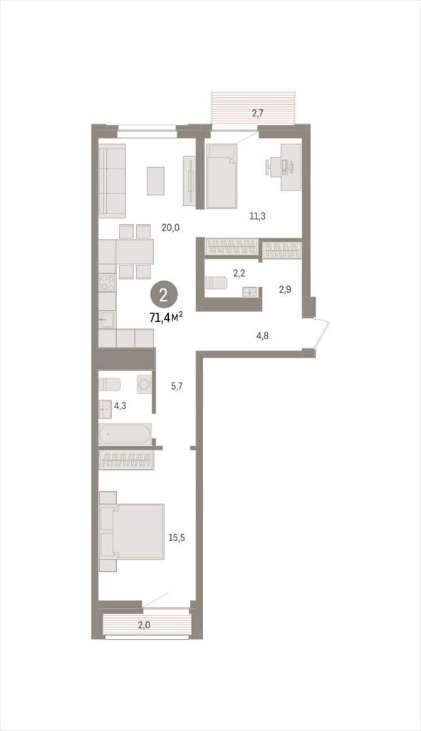Двухкомнатная квартира 71,40 м2 по ул. Причальная 11 за 12100000 руб. |