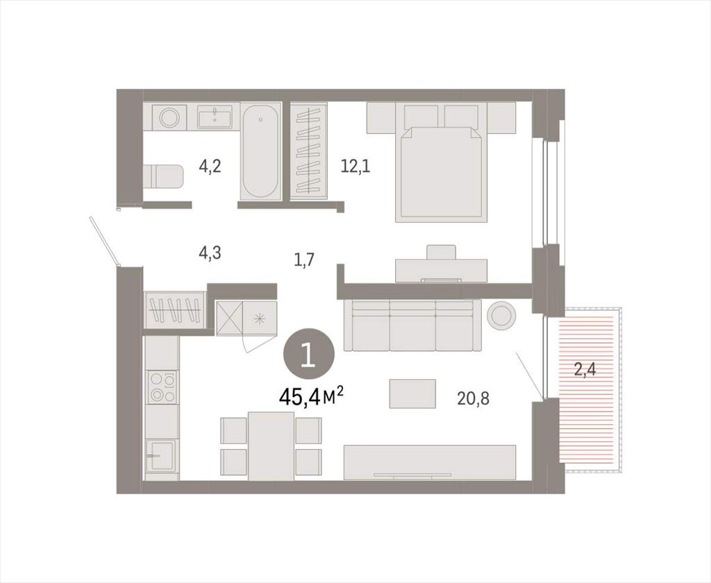 Однокомнатная квартира 45,40 м2 по ул. Мысовская 26к1 за 8150000 руб. |