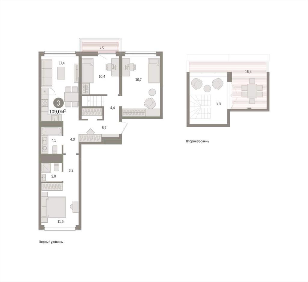Двухуровневая квартира с кухней-гостиной и тремя спальнями в жилом районе «Зарека». Особенности планировки: панорамное остекление, предчистовая отделка, летняя кухня на крыше, балкон, терраса на крыше, семейная ипотека 4%, двухуровневая, вид во двор, разнесённые спальни.