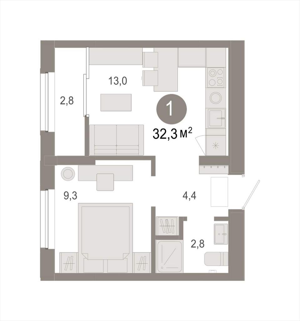 Однокомнатная квартира 32,26 м2 по ул. Томская 52к2 за 5380000 руб. |