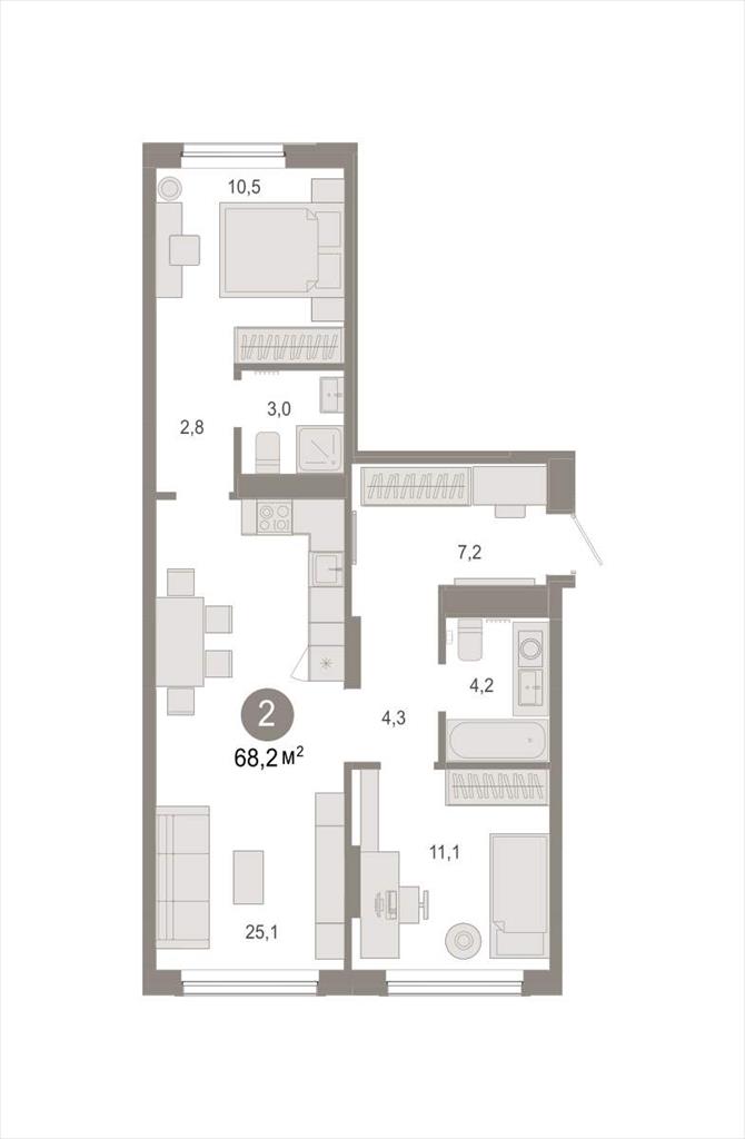 Двухкомнатная квартира 68,16 м2 по ул. Томская 52к2 за 8700000 руб. |