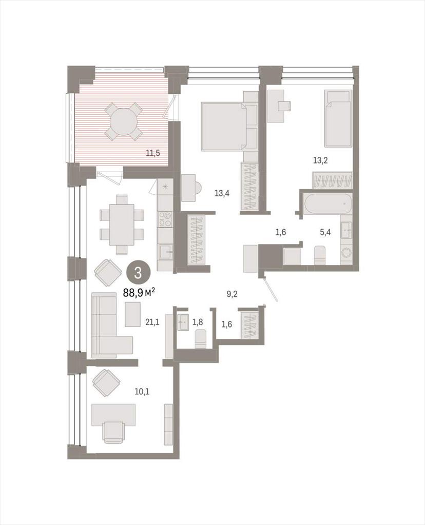 Трехкомнатная квартира 88,87 м2 по ул. Муравленко 9/2 за 14870000 руб. |