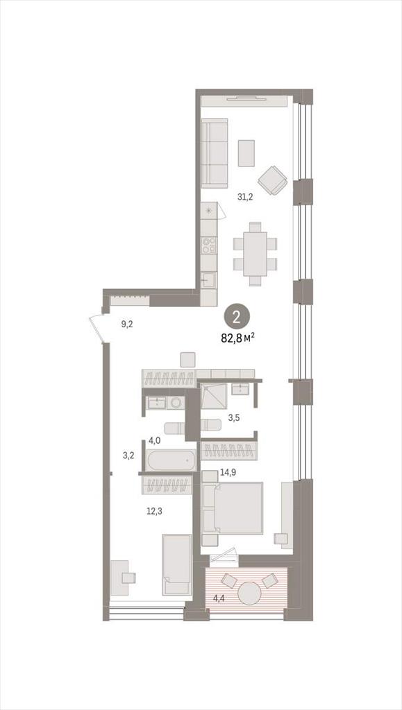 Двухкомнатная квартира 82,76 м2 по ул. Муравленко 9/2 за 13820000 руб. |