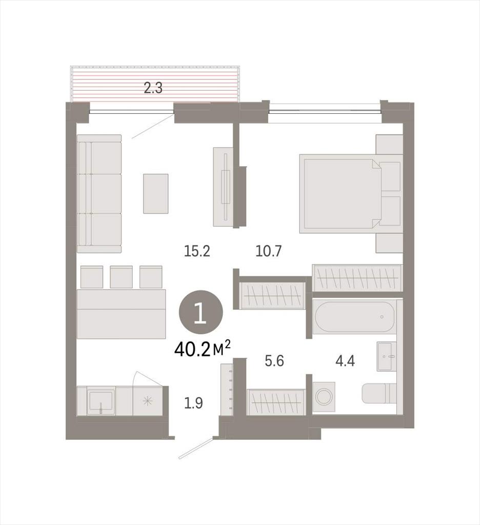 | Квартира с кухней-гостиной и одной спальней в Октябрьском на Туре. Особенности планировки: предчистовая отделка, балкон.