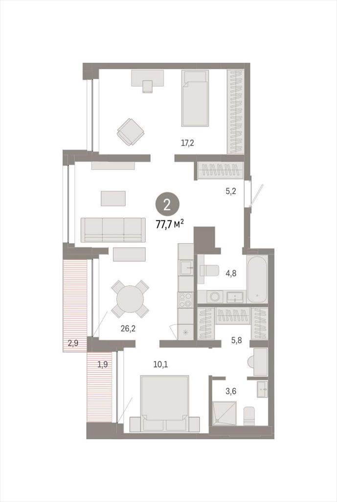Двухкомнатная квартира 77,71 м2 по ул. Муравленко 9/2 за 13800000 руб. |