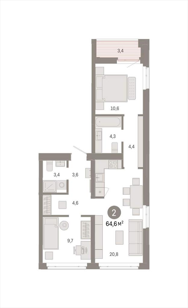 Двухкомнатная квартира 64,60 м2 по ул. Республики 203к1 за 9630000 руб. |