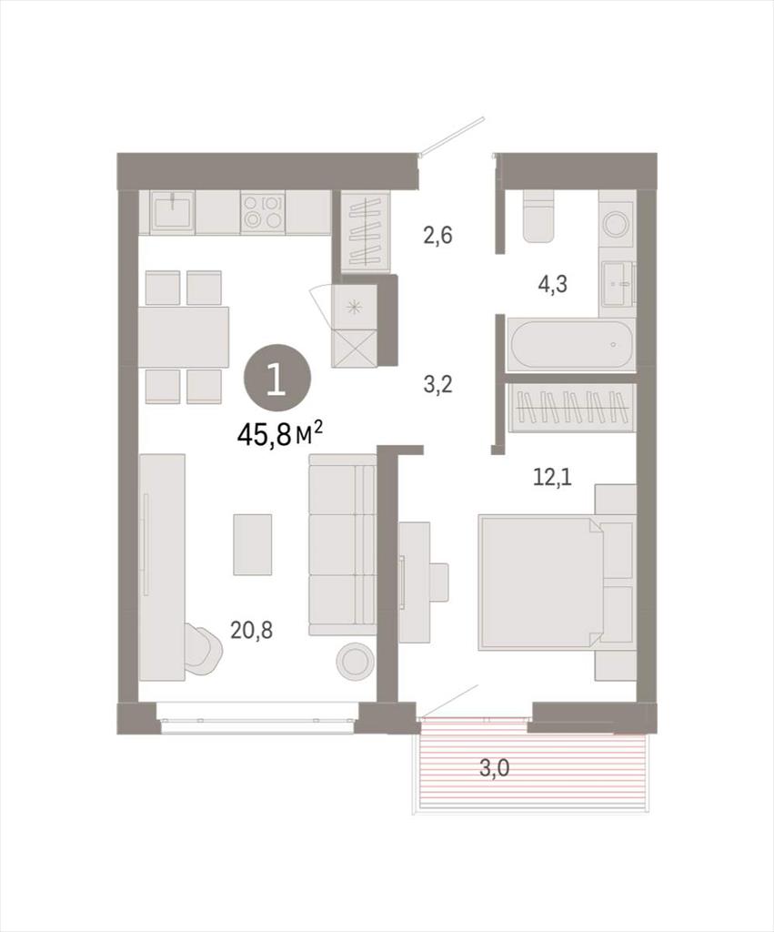 Однокомнатная квартира 45,84 м2 по ул. Республики 203к1 за 7370000 руб. |