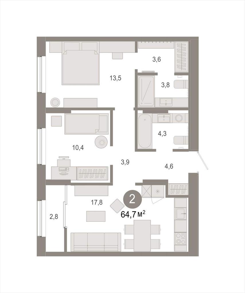 Двухкомнатная квартира 64,68 м2 по ул. Томская 52к2 за 11300000 руб. |