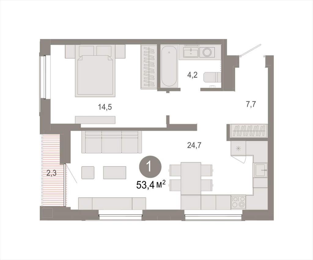 Однокомнатная квартира 53,40 м2 по ул. Томская 52к2 за 8020000 руб. |
