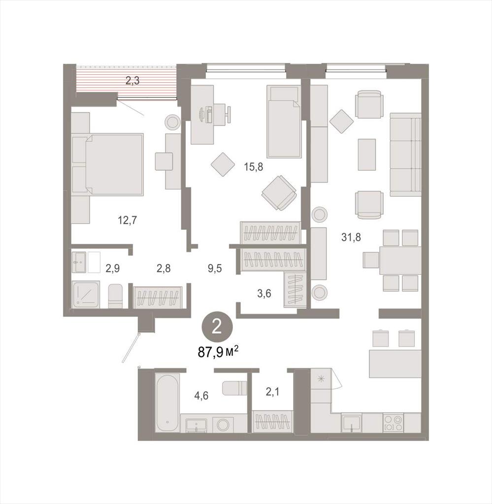 Двухкомнатная квартира 87,87 м2 по ул. Томская 52к2 за 10500000 руб. |