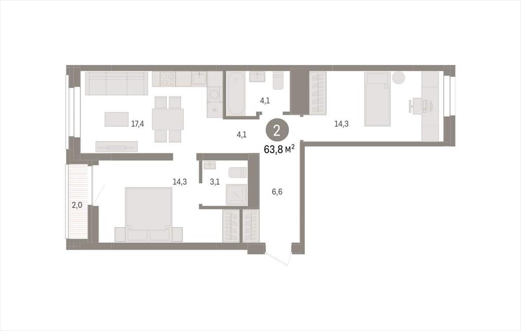 Двухкомнатная квартира 63,80 м2 по ул. Причальная 11 за 11630000 руб. |
