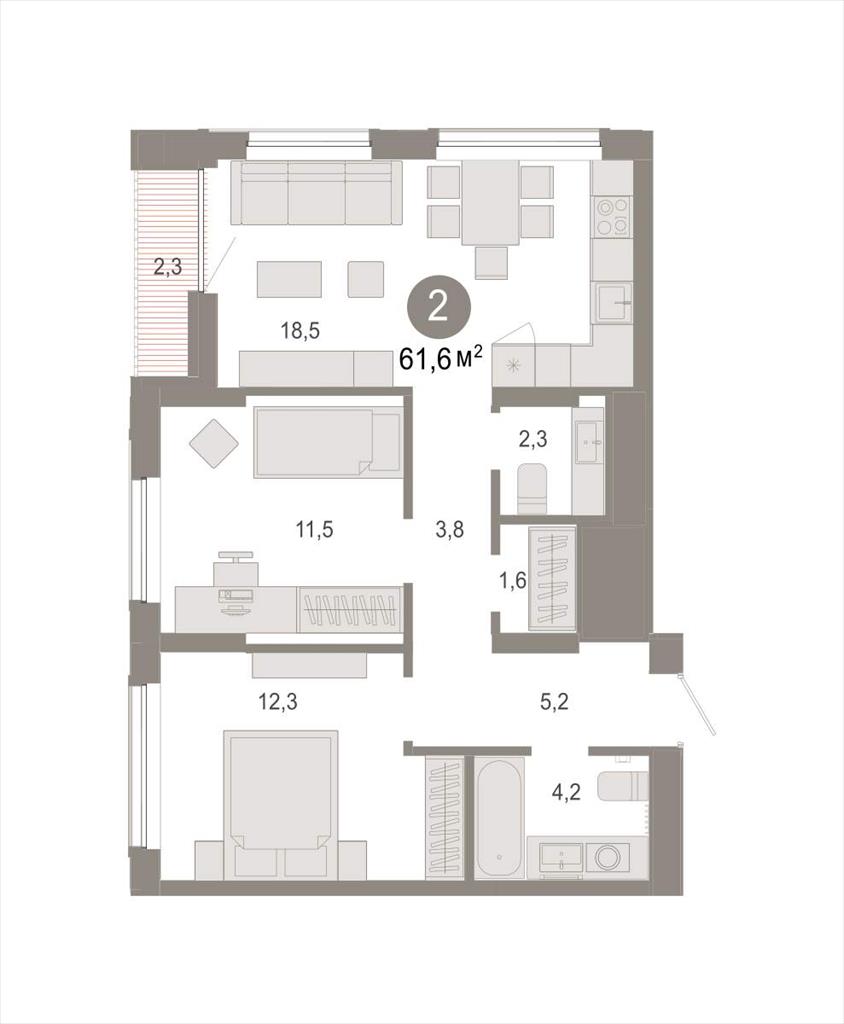 Двухкомнатная квартира 61,63 м2 по ул. Томская 52к2 за 8460000 руб. |