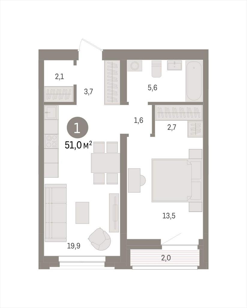 Однокомнатная квартира 51,00 м2 по ул. Причальная 11 за 9740000 руб. |