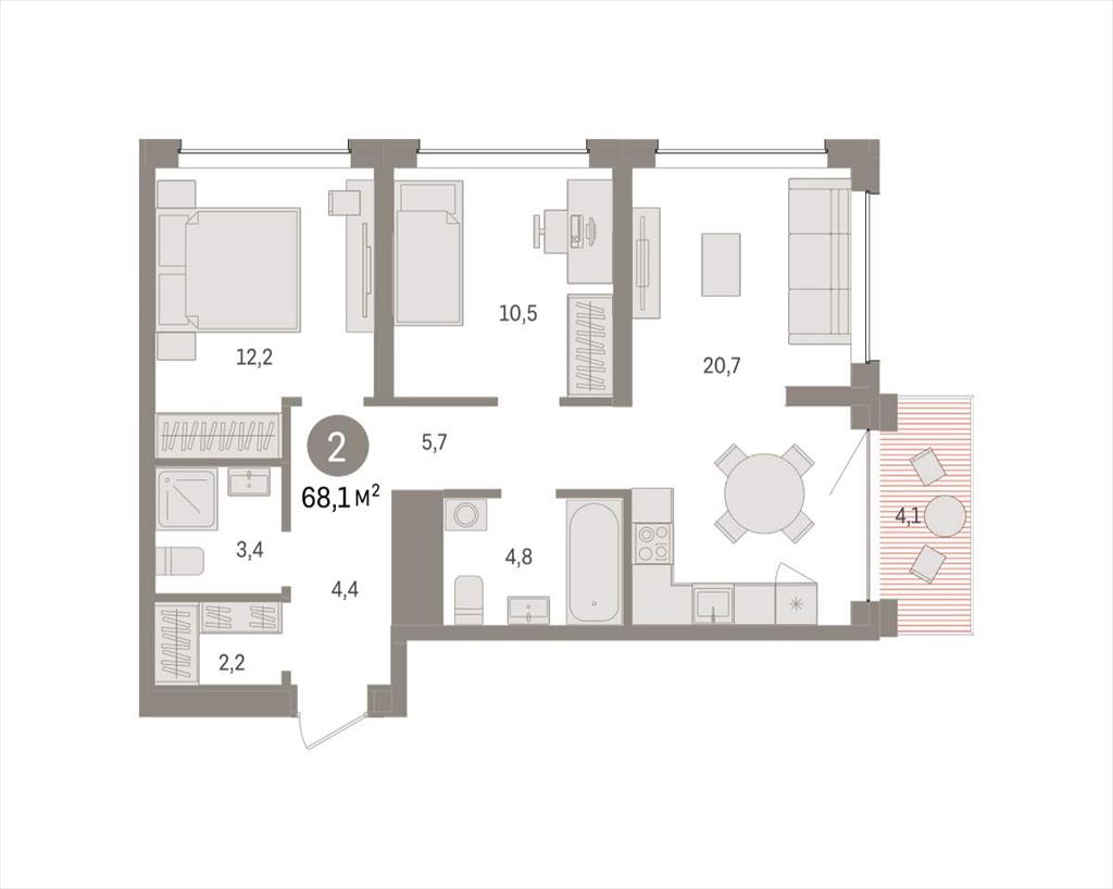 Двухкомнатная квартира 68,05 м2 по ул. Муравленко 9к3 за 11640000 руб. |