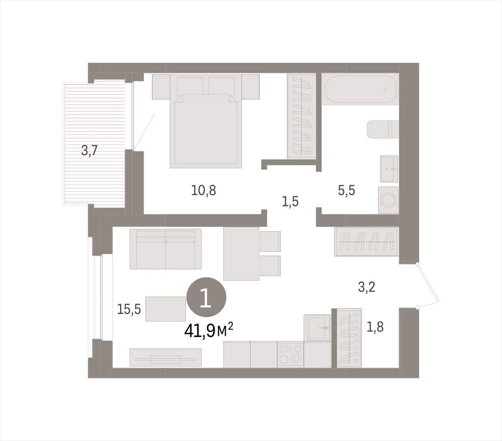 Однокомнатная квартира 41,90 м2 по ул. Причальная 11 за 8270000 руб. |