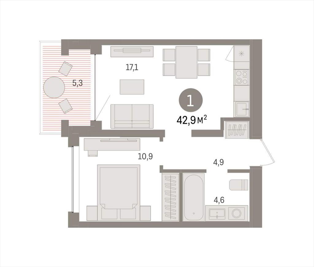 Однокомнатная квартира 42,86 м2 по ул. Муравленко 9к3 за 7310000 руб. |