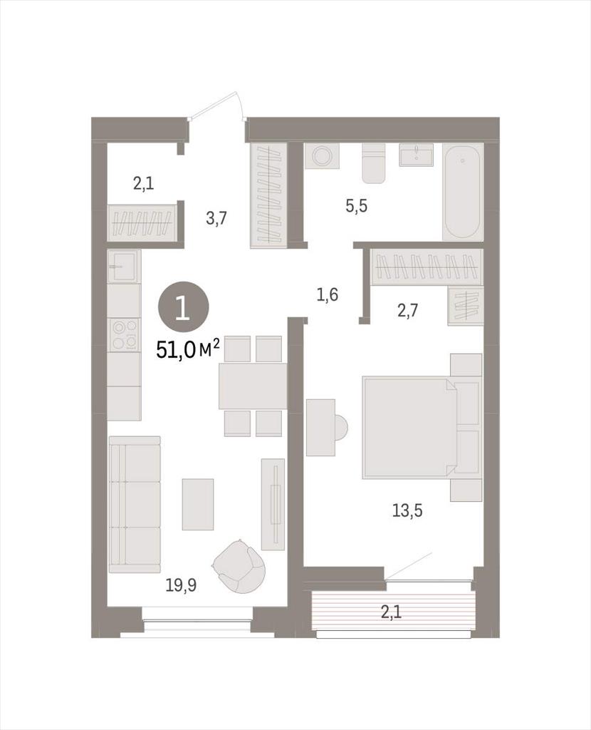 Однокомнатная квартира 51,00 м2 по ул. Причальная 11 за 9930000 руб. |