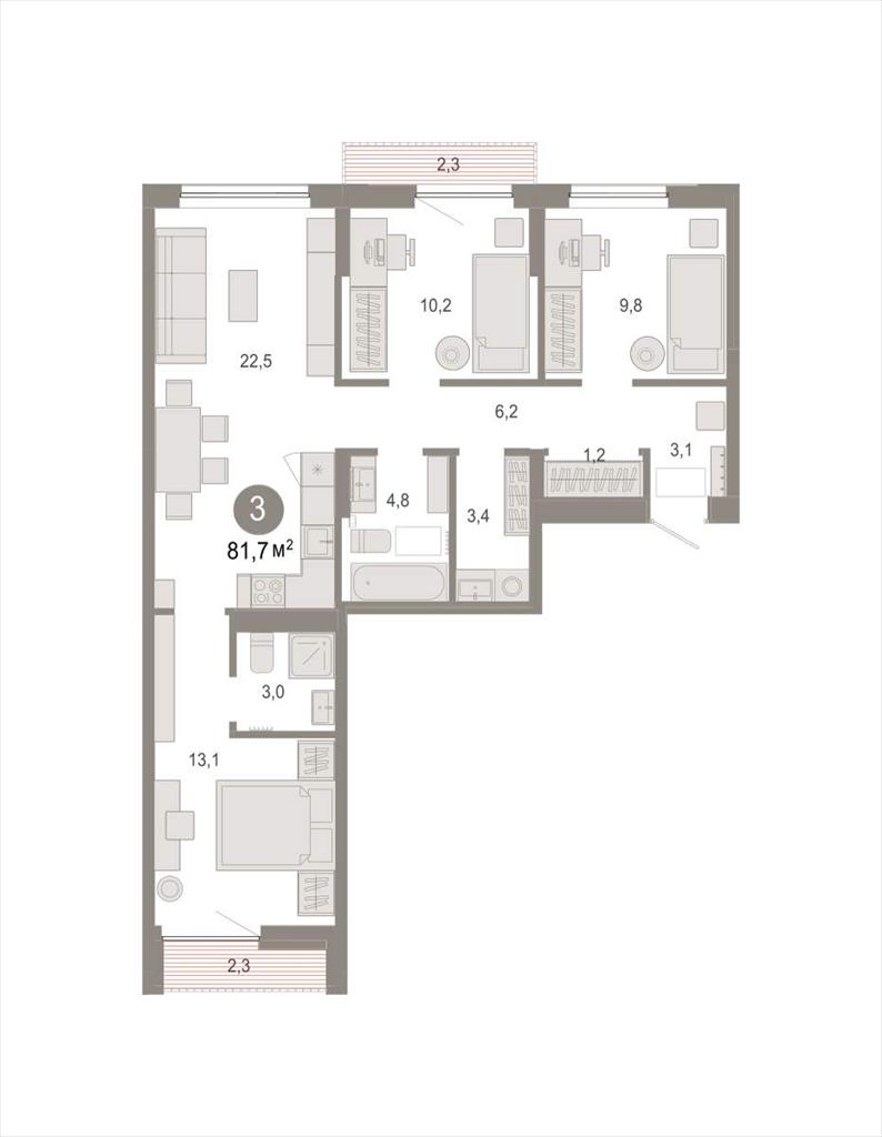 Трехкомнатная квартира 81,69 м2 по ул. Томская 52к2 за 9860000 руб. |