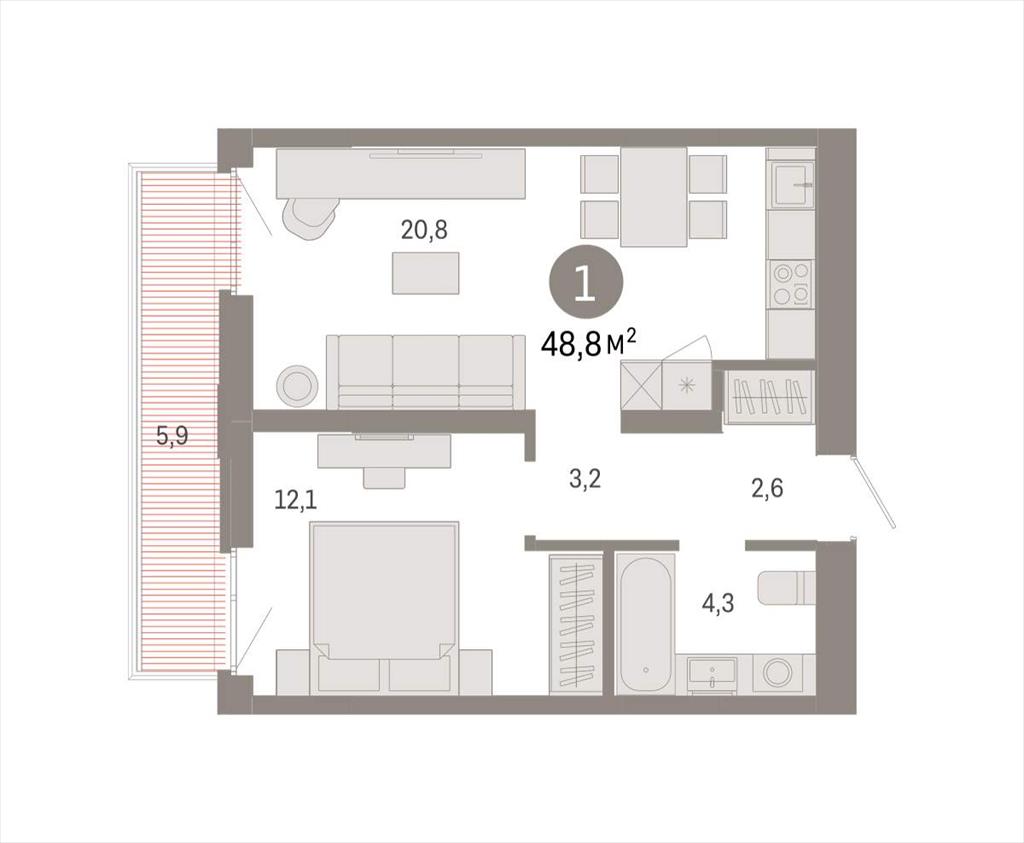 Однокомнатная квартира 48,75 м2 по ул. Республики 203к1 за 7310000 руб. |