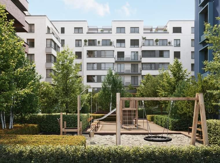 Дворы располагаются на стилобатах и имеют приватный характер с уклоном на тихий и спокойный отдых. Каждый из дворов отличается по функциональному наполнению и дизайну. Тут есть детские площадки, сенсорные сады, лаунж-зоны, функциональные газоны и зоны воркаута. Все оборудование выполнено из натурального дерева: оно вписывается в общий облик, не нагревается летом и не промерзает зимой.