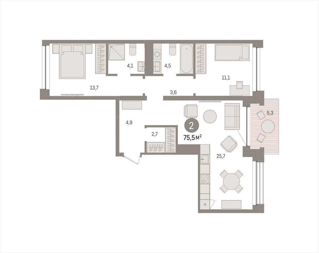 Двухкомнатная квартира 75,50 м2 по ул. Муравленко 9/2 за 12020000 руб. |
