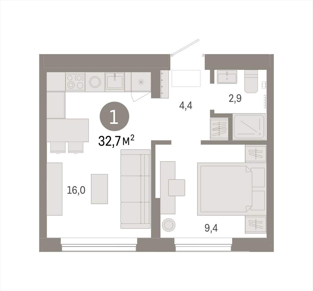 Однокомнатная квартира 32,67 м2 по ул. Томская 52к2 за 5390000 руб. |