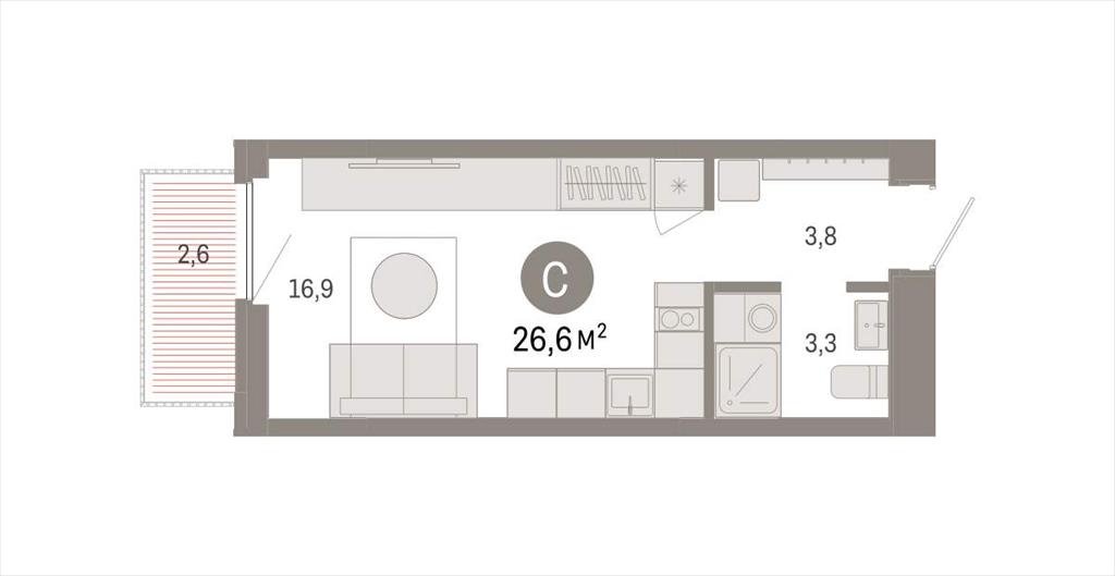 квартира 26,60 м2 по ул. Мысовская 26к1 за 5580000 руб. |