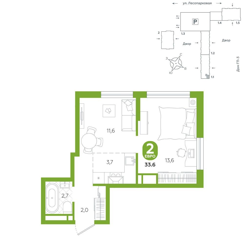 Квартира располагается в ГК «Чистые Пруды» от «Паритет девелопмент». Это флагманский проект компании в Тюмени. <br>Расположение вдали от шумных улиц и оживленного центра создает ощущение жизни на природе и окружает тишиной и спокойствием. Есть вся необходимая социальная и коммерческая инфраструктура: магазины и сфера услуг на первых этажах. Школы, сады, поликлиника, парки в шаговой доступности.<br>Квартал строится в районе Новой Лесобазы. Рядом выезд на объездную, что существенно экономит время. Поездка до центра города на автомобиле занимает 15-20 минут.<br>Городские кварталы «Чистые Пруды» сформирован из домов переменной этажности и многоуровневых паркингов. Ввод 1 очереди строительства запланирован на II кв. 2028 года. <br>Всё благоустройство квартала представлено двумя функциональными зонами: приватная внутри дворовая и общественная. Каждый закрытый двор имеет выход на единую променадную зону - бульвар.<br>Концепция благоустройства основана на принципе модульности, что формирует основную идею приватности. Приватность проекта подчеркивает его особенный климат внутри. Модульное благоустройство позволит максимально эффективно использовать пространство двора и удовлетворить потребности различных категорий жителей.<br>В квартирах базово выполнена улучшенная черновая отделка, которая включает в себя: выровненные стены, стяжка пола с шумоизоляцией, горизонтальная разводка отопления, установлены счетчики с телеметрией, окна с 5-камерным профилем и надежные входные двери.<br>При желании можно добавить ремонт от застройщика и включить его в стоимость ипотеки, что позволит сэкономить на стройматериалах и переехать сразу после получения ключей. <br>Характеристики квартиры:<br>этаж - 10<br>количество комнат - 2<br>номер помещения - 96<br>площадь квартиры - 33,6 кв.мГармоничные пропорции и большие окна наполняют пространство светом, создавая уютную атмосферу. Умное зонирование позволяет удобно организовать как рабочую, так и жилую зоны, что особенно важно для современных жителей. Санузел спроектирован с учетом всех потребностей: здесь есть ванна и место для стиральной машины. Каждый метр квартиры используется с максимальной эффективностью, что делает эту планировку отличным выбором для тех, кто ценит комфорт и удобство. |