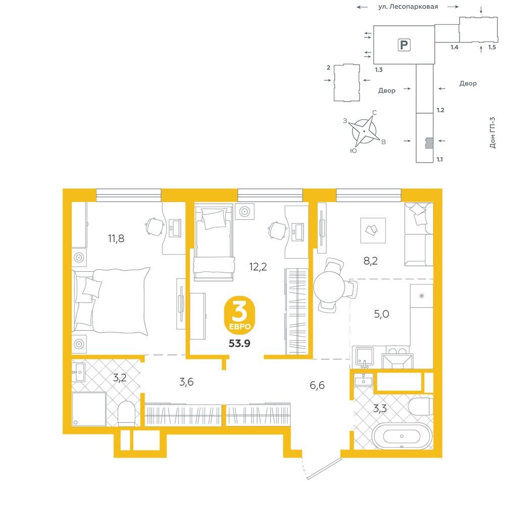 Квартира располагается в ГК «Чистые Пруды» от «Паритет девелопмент». Это флагманский проект компании в Тюмени. <br>Расположение вдали от шумных улиц и оживленного центра создает ощущение жизни на природе и окружает тишиной и спокойствием. Есть вся необходимая социальная и коммерческая инфраструктура: магазины и сфера услуг на первых этажах. Школы, сады, поликлиника, парки в шаговой доступности.<br>Квартал строится в районе Новой Лесобазы. Рядом выезд на объездную, что существенно экономит время. Поездка до центра города на автомобиле занимает 15-20 минут.<br>Городские кварталы «Чистые Пруды» сформирован из домов переменной этажности и многоуровневых паркингов. Ввод 1 очереди строительства запланирован на II кв. 2028 года. <br>Всё благоустройство квартала представлено двумя функциональными зонами: приватная внутри дворовая и общественная. Каждый закрытый двор имеет выход на единую променадную зону - бульвар.<br>Концепция благоустройства основана на принципе модульности, что формирует основную идею приватности. Приватность проекта подчеркивает его особенный климат внутри. Модульное благоустройство позволит максимально эффективно использовать пространство двора и удовлетворить потребности различных категорий жителей.<br>В квартирах базово выполнена улучшенная черновая отделка, которая включает в себя: выровненные стены, стяжка пола с шумоизоляцией, горизонтальная разводка отопления, установлены счетчики с телеметрией, окна с 5-камерным профилем и надежные входные двери.<br>При желании можно добавить ремонт от застройщика и включить его в стоимость ипотеки, что позволит сэкономить на стройматериалах и переехать сразу после получения ключей. <br>Характеристики квартиры:<br>этаж - 12<br>количество комнат - 3<br>номер помещения - 116<br>площадь квартиры - 53,9 кв.мГармоничные пропорции и большие окна наполняют пространство светом, создавая уютную атмосферу. Умное зонирование позволяет удобно организовать как рабочую, так и жилую зоны, что особенно важно для современных жителей. Санузел спроектирован с учетом всех потребностей: здесь есть ванна и место для стиральной машины. Каждый метр квартиры используется с максимальной эффективностью, что делает эту планировку отличным выбором для тех, кто ценит комфорт и удобство. |