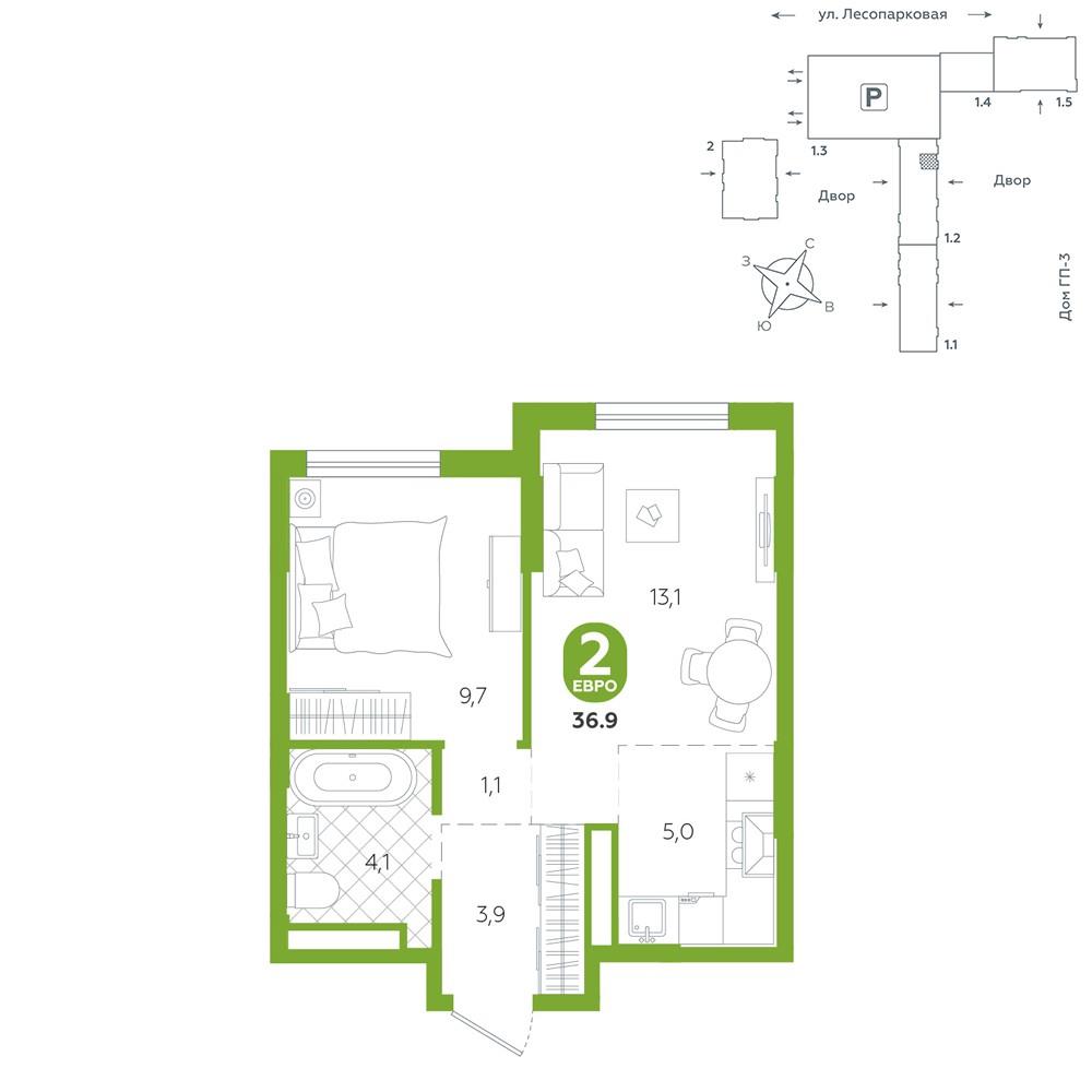 Квартира располагается в ГК «Чистые Пруды» от «Паритет девелопмент». Это флагманский проект компании в Тюмени. <br>Расположение вдали от шумных улиц и оживленного центра создает ощущение жизни на природе и окружает тишиной и спокойствием. Есть вся необходимая социальная и коммерческая инфраструктура: магазины и сфера услуг на первых этажах. Школы, сады, поликлиника, парки в шаговой доступности.<br>Квартал строится в районе Новой Лесобазы. Рядом выезд на объездную, что существенно экономит время. Поездка до центра города на автомобиле занимает 15-20 минут.<br>Городские кварталы «Чистые Пруды» сформирован из домов переменной этажности и многоуровневых паркингов. Ввод 1 очереди строительства запланирован на II кв. 2028 года. <br>Всё благоустройство квартала представлено двумя функциональными зонами: приватная внутри дворовая и общественная. Каждый закрытый двор имеет выход на единую променадную зону - бульвар.<br>Концепция благоустройства основана на принципе модульности, что формирует основную идею приватности. Приватность проекта подчеркивает его особенный климат внутри. Модульное благоустройство позволит максимально эффективно использовать пространство двора и удовлетворить потребности различных категорий жителей.<br>В квартирах базово выполнена улучшенная черновая отделка, которая включает в себя: выровненные стены, стяжка пола с шумоизоляцией, горизонтальная разводка отопления, установлены счетчики с телеметрией, окна с 5-камерным профилем и надежные входные двери.<br>При желании можно добавить ремонт от застройщика и включить его в стоимость ипотеки, что позволит сэкономить на стройматериалах и переехать сразу после получения ключей. <br>Характеристики квартиры:<br>этаж - 1<br>количество комнат - 2<br>номер помещения - 136<br>площадь квартиры - 36,9 кв.мГармоничные пропорции и большие окна наполняют пространство светом, создавая уютную атмосферу. Умное зонирование позволяет удобно организовать как рабочую, так и жилую зоны, что особенно важно для современных жителей. Санузел спроектирован с учетом всех потребностей: здесь есть ванна и место для стиральной машины. Каждый метр квартиры используется с максимальной эффективностью, что делает эту планировку отличным выбором для тех, кто ценит комфорт и удобство. |