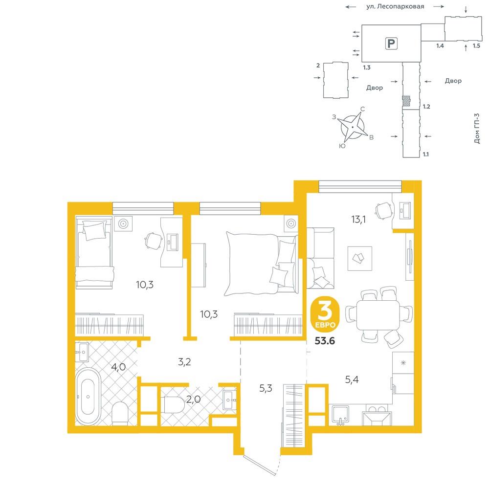 Квартира располагается в ГК «Чистые Пруды» от «Паритет девелопмент». Это флагманский проект компании в Тюмени. <br>Расположение вдали от шумных улиц и оживленного центра создает ощущение жизни на природе и окружает тишиной и спокойствием. Есть вся необходимая социальная и коммерческая инфраструктура: магазины и сфера услуг на первых этажах. Школы, сады, поликлиника, парки в шаговой доступности.<br>Квартал строится в районе Новой Лесобазы. Рядом выезд на объездную, что существенно экономит время. Поездка до центра города на автомобиле занимает 15-20 минут.<br>Городские кварталы «Чистые Пруды» сформирован из домов переменной этажности и многоуровневых паркингов. Ввод 1 очереди строительства запланирован на II кв. 2028 года. <br>Всё благоустройство квартала представлено двумя функциональными зонами: приватная внутри дворовая и общественная. Каждый закрытый двор имеет выход на единую променадную зону - бульвар.<br>Концепция благоустройства основана на принципе модульности, что формирует основную идею приватности. Приватность проекта подчеркивает его особенный климат внутри. Модульное благоустройство позволит максимально эффективно использовать пространство двора и удовлетворить потребности различных категорий жителей.<br>В квартирах базово выполнена улучшенная черновая отделка, которая включает в себя: выровненные стены, стяжка пола с шумоизоляцией, горизонтальная разводка отопления, установлены счетчики с телеметрией, окна с 5-камерным профилем и надежные входные двери.<br>При желании можно добавить ремонт от застройщика и включить его в стоимость ипотеки, что позволит сэкономить на стройматериалах и переехать сразу после получения ключей. <br>Характеристики квартиры:<br>этаж - 6<br>количество комнат - 3<br>номер помещения - 190<br>площадь квартиры - 53,6 кв.мГармоничные пропорции и большие окна наполняют пространство светом, создавая уютную атмосферу. Умное зонирование позволяет удобно организовать как рабочую, так и жилую зоны, что особенно важно для современных жителей. Санузел спроектирован с учетом всех потребностей: здесь есть ванна и место для стиральной машины. Каждый метр квартиры используется с максимальной эффективностью, что делает эту планировку отличным выбором для тех, кто ценит комфорт и удобство. |