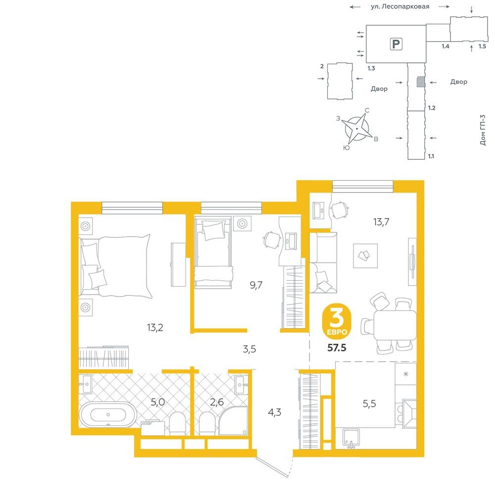 Квартира располагается в ГК «Чистые Пруды» от «Паритет девелопмент». Это флагманский проект компании в Тюмени. <br>Расположение вдали от шумных улиц и оживленного центра создает ощущение жизни на природе и окружает тишиной и спокойствием. Есть вся необходимая социальная и коммерческая инфраструктура: магазины и сфера услуг на первых этажах. Школы, сады, поликлиника, парки в шаговой доступности.<br>Квартал строится в районе Новой Лесобазы. Рядом выезд на объездную, что существенно экономит время. Поездка до центра города на автомобиле занимает 15-20 минут.<br>Городские кварталы «Чистые Пруды» сформирован из домов переменной этажности и многоуровневых паркингов. Ввод 1 очереди строительства запланирован на II кв. 2028 года. <br>Всё благоустройство квартала представлено двумя функциональными зонами: приватная внутри дворовая и общественная. Каждый закрытый двор имеет выход на единую променадную зону - бульвар.<br>Концепция благоустройства основана на принципе модульности, что формирует основную идею приватности. Приватность проекта подчеркивает его особенный климат внутри. Модульное благоустройство позволит максимально эффективно использовать пространство двора и удовлетворить потребности различных категорий жителей.<br>В квартирах базово выполнена улучшенная черновая отделка, которая включает в себя: выровненные стены, стяжка пола с шумоизоляцией, горизонтальная разводка отопления, установлены счетчики с телеметрией, окна с 5-камерным профилем и надежные входные двери.<br>При желании можно добавить ремонт от застройщика и включить его в стоимость ипотеки, что позволит сэкономить на стройматериалах и переехать сразу после получения ключей. <br>Характеристики квартиры:<br>этаж - 10<br>количество комнат - 3<br>номер помещения - 226<br>площадь квартиры - 57,5 кв.мГармоничные пропорции и большие окна наполняют пространство светом, создавая уютную атмосферу. Умное зонирование позволяет удобно организовать как рабочую, так и жилую зоны, что особенно важно для современных жителей. Санузел спроектирован с учетом всех потребностей: здесь есть ванна и место для стиральной машины. Каждый метр квартиры используется с максимальной эффективностью, что делает эту планировку отличным выбором для тех, кто ценит комфорт и удобство. |