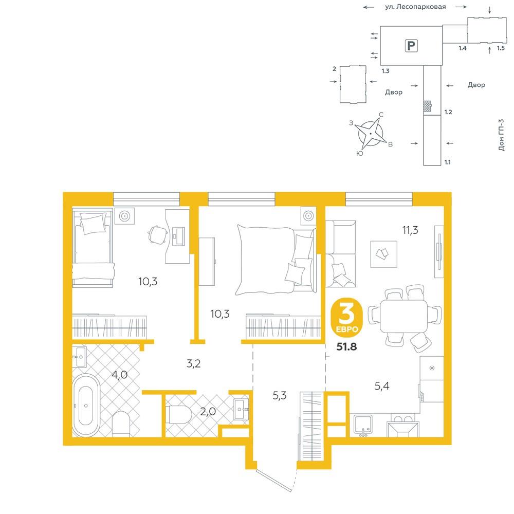 Квартира располагается в ГК «Чистые Пруды» от «Паритет девелопмент». Это флагманский проект компании в Тюмени. <br>Расположение вдали от шумных улиц и оживленного центра создает ощущение жизни на природе и окружает тишиной и спокойствием. Есть вся необходимая социальная и коммерческая инфраструктура: магазины и сфера услуг на первых этажах. Школы, сады, поликлиника, парки в шаговой доступности.<br>Квартал строится в районе Новой Лесобазы. Рядом выезд на объездную, что существенно экономит время. Поездка до центра города на автомобиле занимает 15-20 минут.<br>Городские кварталы «Чистые Пруды» сформирован из домов переменной этажности и многоуровневых паркингов. Ввод 1 очереди строительства запланирован на II кв. 2028 года. <br>Всё благоустройство квартала представлено двумя функциональными зонами: приватная внутри дворовая и общественная. Каждый закрытый двор имеет выход на единую променадную зону - бульвар.<br>Концепция благоустройства основана на принципе модульности, что формирует основную идею приватности. Приватность проекта подчеркивает его особенный климат внутри. Модульное благоустройство позволит максимально эффективно использовать пространство двора и удовлетворить потребности различных категорий жителей.<br>В квартирах базово выполнена улучшенная черновая отделка, которая включает в себя: выровненные стены, стяжка пола с шумоизоляцией, горизонтальная разводка отопления, установлены счетчики с телеметрией, окна с 5-камерным профилем и надежные входные двери.<br>При желании можно добавить ремонт от застройщика и включить его в стоимость ипотеки, что позволит сэкономить на стройматериалах и переехать сразу после получения ключей. <br>Характеристики квартиры:<br>этаж - 12<br>количество комнат - 3<br>номер помещения - 250<br>площадь квартиры - 51,8 кв.мГармоничные пропорции и большие окна наполняют пространство светом, создавая уютную атмосферу. Умное зонирование позволяет удобно организовать как рабочую, так и жилую зоны, что особенно важно для современных жителей. Санузел спроектирован с учетом всех потребностей: здесь есть ванна и место для стиральной машины. Каждый метр квартиры используется с максимальной эффективностью, что делает эту планировку отличным выбором для тех, кто ценит комфорт и удобство. |