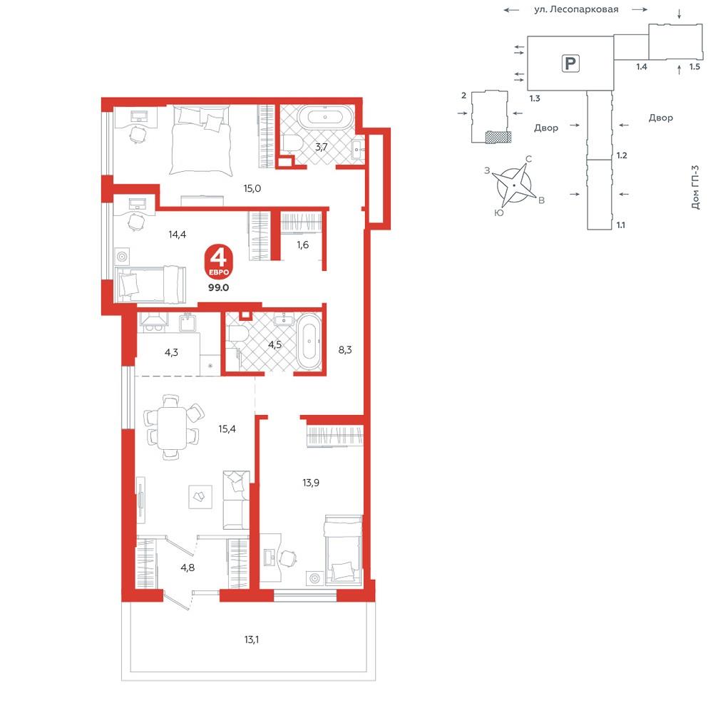 <p>Квартира располагается в ГК «Чистые Пруды» от «Паритет девелопмент». Это флагманский проект компании в Тюмени. </p><p><br></p><p>Ра сположение вдали от шумных улиц и оживленного центра создает ощущение жизни на природе и окружает тишиной и спокойствием. Есть вся необходимая социальная и коммерческая инфраструктура: магазины и сфера услуг на первых этажах. Школы, сады, поликлиника, парки в шаговой доступности.</p><p><br></p> ;<p>Квартал строится в районе Новой Лесобазы. Рядом выезд на объездную, что существенно экономит время. Поездка до центра города на автомобиле занимает 15-20 минут.</p><p><br></p><p >Городские кварталы «Чистые Пруды»сформирован из домов переменной этажности и многоуровневых паркингов. Ввод 1 очереди строительства запланирован на II кв. 2028 года. </p><p><br></p><p>Вс ё благоустройство квартала представлено двумя функциональными зонами: приватная внутри дворовая и общественная. Каждый закрытый двор имеет выход на единую променадную зону - бульвар.</p><p><br></p>< ;p>Концепция благоустройства основана на принципе модульности, что формирует основную идею приватности. Приватность проекта подчеркивает его особенный климат внутри. Модульное благоустройство позволит максимально эффективно использовать пространство двора и удовлетворить потребности различных категорий жителей.</p><p><br></p>< ;p>В квартирах базово выполнена улучшенная черновая отделка, которая включает в себя: выровненные стены, стяжка пола с шумоизоляцией, горизонтальная разводка отопления, установлены счетчики с телеметрией, окна с 5-камерным профилем и надежные входные двери.</p><p><br></p><p >При желании можно добавить ремонт от застройщика и включить его в стоимость ипотеки, что позволит сэкономить на стройматериалах и переехать сразу после получения ключей. </p><p><br></p><p>Ха рактеристики квартиры:</p><p><br></p>&l t;p>этаж - 1</p><p><br></p><p>к оличество комнат - 4</p><p><br></p><p>н омер помещения - 2</p><p><br></p><p>п лощадь квартиры - 99 кв.м</p><p><br></p><p&g t;Гармоничные пропорции и большие окна наполняют пространство светом, создавая уютную атмосферу. Умное зонирование позволяет удобно организовать как рабочую, так и жилую зоны, что особенно важно для современных жителей. Санузел спроектирован с учетом всех потребностей: здесь есть ванна и место для стиральной машины. Каждый метр квартиры используется с максимальной эффективностью, что делает эту планировку отличным выбором для тех, кто ценит комфорт и удобство.</p> |