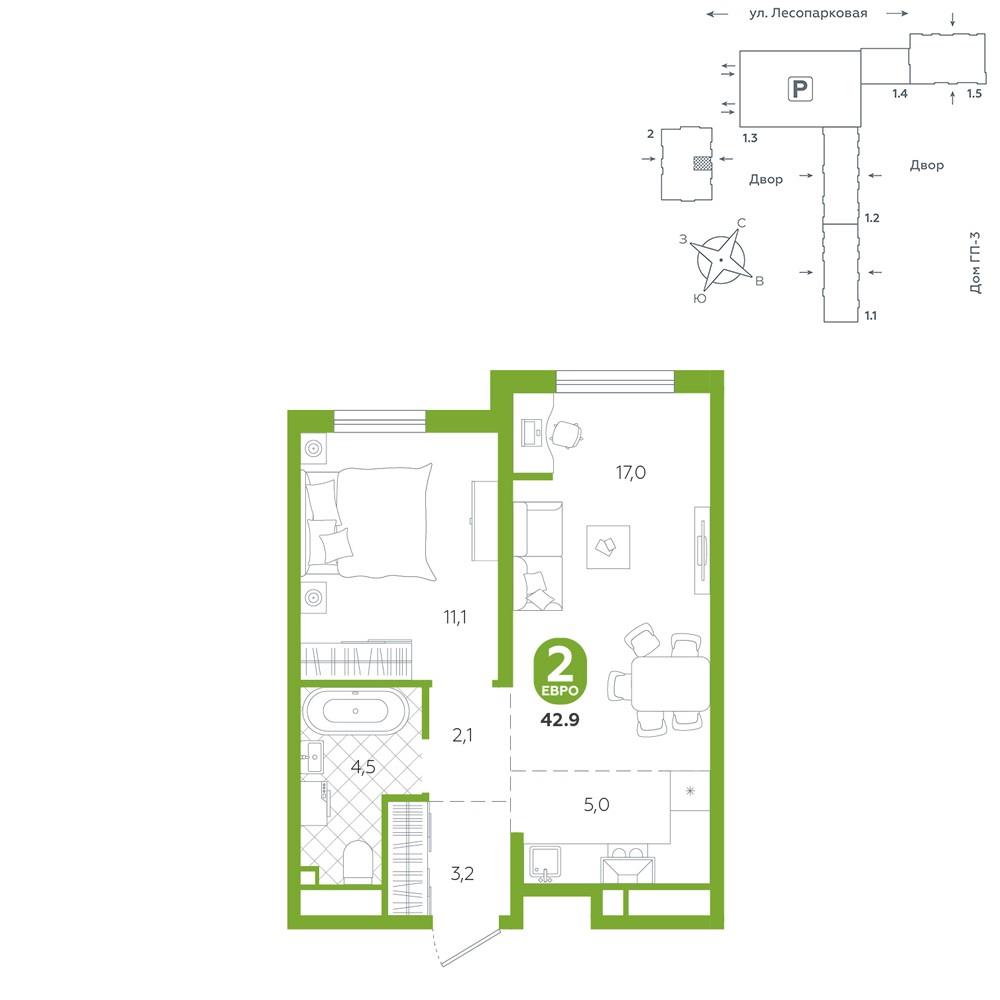 Квартира располагается в ГК «Чистые Пруды» от «Паритет девелопмент». Это флагманский проект компании в Тюмени. <br>Расположение вдали от шумных улиц и оживленного центра создает ощущение жизни на природе и окружает тишиной и спокойствием. Есть вся необходимая социальная и коммерческая инфраструктура: магазины и сфера услуг на первых этажах. Школы, сады, поликлиника, парки в шаговой доступности.<br>Квартал строится в районе Новой Лесобазы. Рядом выезд на объездную, что существенно экономит время. Поездка до центра города на автомобиле занимает 15-20 минут.<br>Городские кварталы «Чистые Пруды»сформирован из домов переменной этажности и многоуровневых паркингов. Ввод 1 очереди строительства запланирован на II кв. 2028 года. <br>Всё благоустройство квартала представлено двумя функциональными зонами: приватная внутри дворовая и общественная. Каждый закрытый двор имеет выход на единую променадную зону - бульвар.<br>Концепция благоустройства основана на принципе модульности, что формирует основную идею приватности. Приватность проекта подчеркивает его особенный климат внутри. Модульное благоустройство позволит максимально эффективно использовать пространство двора и удовлетворить потребности различных категорий жителей.<br>В квартирах базово выполнена улучшенная черновая отделка, которая включает в себя: выровненные стены, стяжка пола с шумоизоляцией, горизонтальная разводка отопления, установлены счетчики с телеметрией, окна с 5-камерным профилем и надежные входные двери.<br>При желании можно добавить ремонт от застройщика и включить его в стоимость ипотеки, что позволит сэкономить на стройматериалах и переехать сразу после получения ключей. <br>Характеристики квартиры:<br>этаж - 8<br>количество комнат - 2<br>номер помещения - 67<br>площадь квартиры - 42,9 кв.м<br>Гармоничные пропорции и большие окна наполняют пространство светом, создавая уютную атмосферу. Умное зонирование позволяет удобно организовать как рабочую, так и жилую зоны, что особенно важно для современных жителей. Санузел спроектирован с учетом всех потребностей: здесь есть ванна и место для стиральной машины. Каждый метр квартиры используется с максимальной эффективностью, что делает эту планировку отличным выбором для тех, кто ценит комфорт и удобство. |