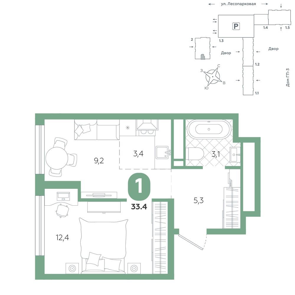 Квартира располагается в ГК «Чистые Пруды» от «Паритет девелопмент». Это флагманский проект компании в Тюмени. <br>Расположение вдали от шумных улиц и оживленного центра создает ощущение жизни на природе и окружает тишиной и спокойствием. Есть вся необходимая социальная и коммерческая инфраструктура: магазины и сфера услуг на первых этажах. Школы, сады, поликлиника, парки в шаговой доступности.<br>Квартал строится в районе Новой Лесобазы. Рядом выезд на объездную, что существенно экономит время. Поездка до центра города на автомобиле занимает 15-20 минут.<br>Городские кварталы «Чистые Пруды»сформирован из домов переменной этажности и многоуровневых паркингов. Ввод 1 очереди строительства запланирован на II кв. 2028 года. <br>Всё благоустройство квартала представлено двумя функциональными зонами: приватная внутри дворовая и общественная. Каждый закрытый двор имеет выход на единую променадную зону - бульвар.<br>Концепция благоустройства основана на принципе модульности, что формирует основную идею приватности. Приватность проекта подчеркивает его особенный климат внутри. Модульное благоустройство позволит максимально эффективно использовать пространство двора и удовлетворить потребности различных категорий жителей.<br>В квартирах базово выполнена улучшенная черновая отделка, которая включает в себя: выровненные стены, стяжка пола с шумоизоляцией, горизонтальная разводка отопления, установлены счетчики с телеметрией, окна с 5-камерным профилем и надежные входные двери.<br>При желании можно добавить ремонт от застройщика и включить его в стоимость ипотеки, что позволит сэкономить на стройматериалах и переехать сразу после получения ключей. <br>Характеристики квартиры:<br>этаж - 9<br>количество комнат - 1<br>номер помещения - 80<br>площадь квартиры - 33,4 кв.м<br>Гармоничные пропорции и большие окна наполняют пространство светом, создавая уютную атмосферу. Умное зонирование позволяет удобно организовать как рабочую, так и жилую зоны, что особенно важно для современных жителей. Санузел спроектирован с учетом всех потребностей: здесь есть ванна и место для стиральной машины. Каждый метр квартиры используется с максимальной эффективностью, что делает эту планировку отличным выбором для тех, кто ценит комфорт и удобство. |
