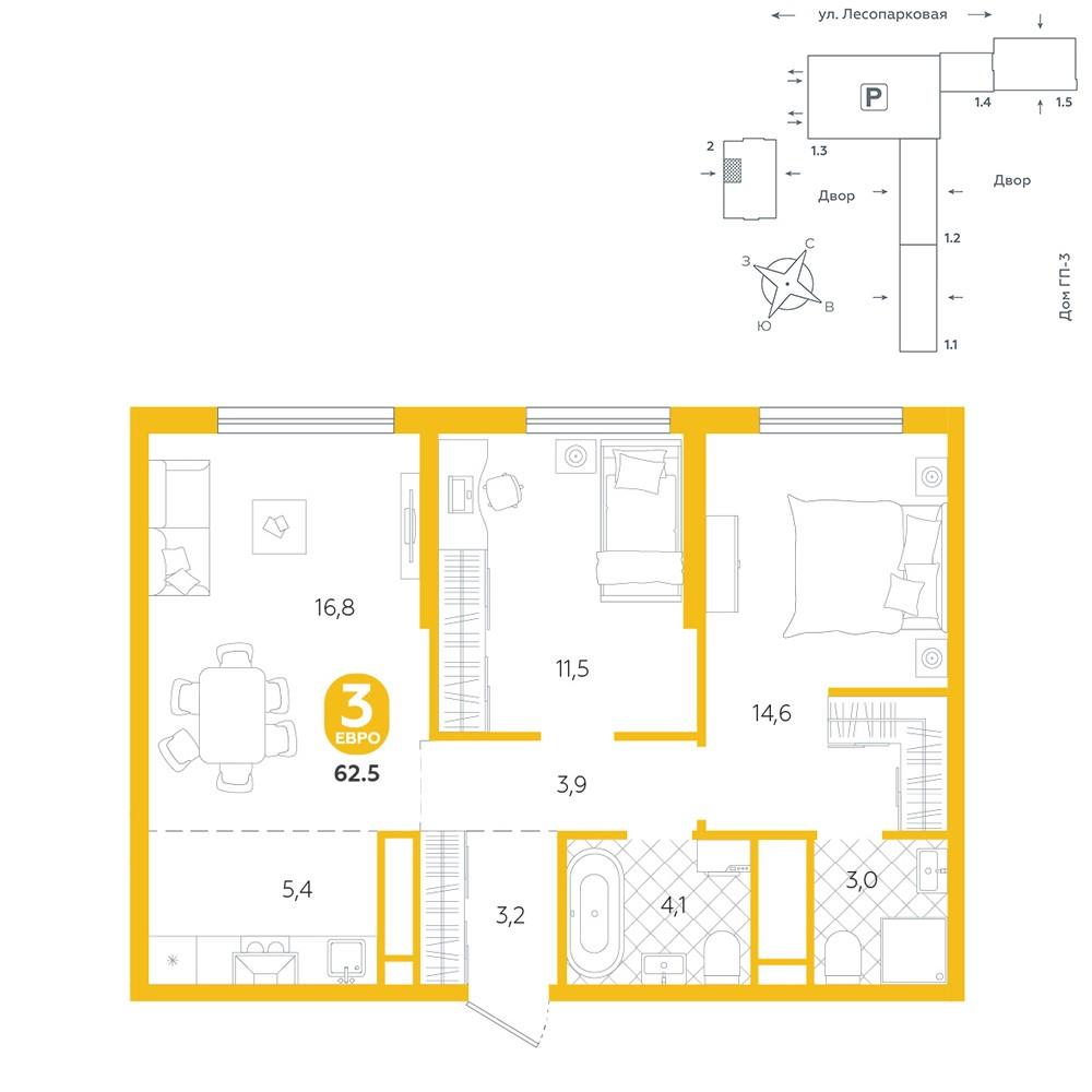 Квартира располагается в ГК «Чистые Пруды» от «Паритет девелопмент». Это флагманский проект компании в Тюмени. <br>Расположение вдали от шумных улиц и оживленного центра создает ощущение жизни на природе и окружает тишиной и спокойствием. Есть вся необходимая социальная и коммерческая инфраструктура: магазины и сфера услуг на первых этажах. Школы, сады, поликлиника, парки в шаговой доступности.<br>Квартал строится в районе Новой Лесобазы. Рядом выезд на объездную, что существенно экономит время. Поездка до центра города на автомобиле занимает 15-20 минут.<br>Городские кварталы «Чистые Пруды»сформирован из домов переменной этажности и многоуровневых паркингов. Ввод 1 очереди строительства запланирован на II кв. 2028 года. <br>Всё благоустройство квартала представлено двумя функциональными зонами: приватная внутри дворовая и общественная. Каждый закрытый двор имеет выход на единую променадную зону - бульвар.<br>Концепция благоустройства основана на принципе модульности, что формирует основную идею приватности. Приватность проекта подчеркивает его особенный климат внутри. Модульное благоустройство позволит максимально эффективно использовать пространство двора и удовлетворить потребности различных категорий жителей.<br>В квартирах базово выполнена улучшенная черновая отделка, которая включает в себя: выровненные стены, стяжка пола с шумоизоляцией, горизонтальная разводка отопления, установлены счетчики с телеметрией, окна с 5-камерным профилем и надежные входные двери.<br>При желании можно добавить ремонт от застройщика и включить его в стоимость ипотеки, что позволит сэкономить на стройматериалах и переехать сразу после получения ключей. <br>Характеристики квартиры:<br>этаж - 22<br>количество комнат - 3<br>номер помещения - 213<br>площадь квартиры - 62,5 кв.м<br>Гармоничные пропорции и большие окна наполняют пространство светом, создавая уютную атмосферу. Умное зонирование позволяет удобно организовать как рабочую, так и жилую зоны, что особенно важно для современных жителей. Санузел спроектирован с учетом всех потребностей: здесь есть ванна и место для стиральной машины. Каждый метр квартиры используется с максимальной эффективностью, что делает эту планировку отличным выбором для тех, кто ценит комфорт и удобство. |