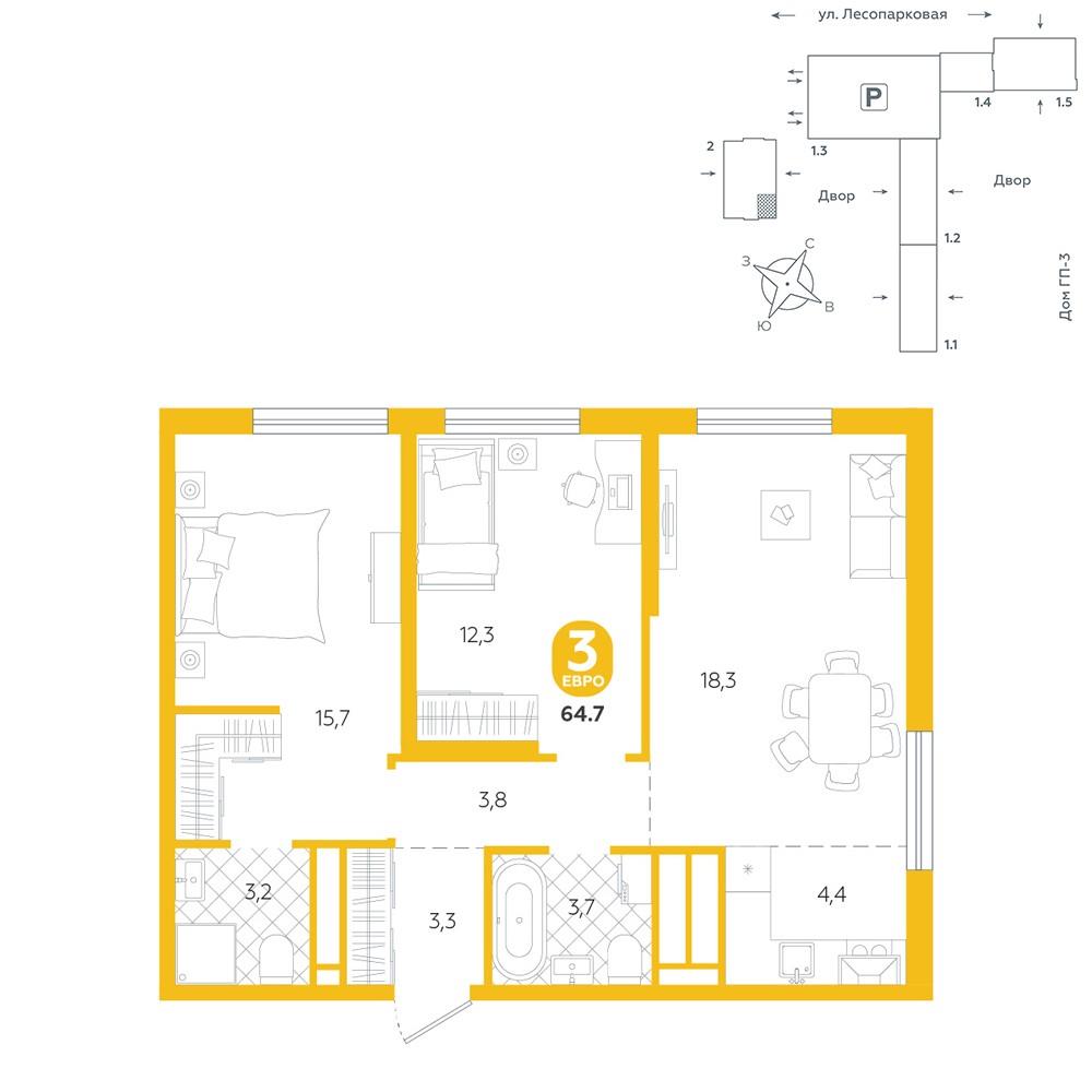 Квартира располагается в ГК «Чистые Пруды» от «Паритет девелопмент». Это флагманский проект компании в Тюмени. <br>Расположение вдали от шумных улиц и оживленного центра создает ощущение жизни на природе и окружает тишиной и спокойствием. Есть вся необходимая социальная и коммерческая инфраструктура: магазины и сфера услуг на первых этажах. Школы, сады, поликлиника, парки в шаговой доступности.<br>Квартал строится в районе Новой Лесобазы. Рядом выезд на объездную, что существенно экономит время. Поездка до центра города на автомобиле занимает 15-20 минут.<br>Городские кварталы «Чистые Пруды»сформирован из домов переменной этажности и многоуровневых паркингов. Ввод 1 очереди строительства запланирован на II кв. 2028 года. <br>Всё благоустройство квартала представлено двумя функциональными зонами: приватная внутри дворовая и общественная. Каждый закрытый двор имеет выход на единую променадную зону - бульвар.<br>Концепция благоустройства основана на принципе модульности, что формирует основную идею приватности. Приватность проекта подчеркивает его особенный климат внутри. Модульное благоустройство позволит максимально эффективно использовать пространство двора и удовлетворить потребности различных категорий жителей.<br>В квартирах базово выполнена улучшенная черновая отделка, которая включает в себя: выровненные стены, стяжка пола с шумоизоляцией, горизонтальная разводка отопления, установлены счетчики с телеметрией, окна с 5-камерным профилем и надежные входные двери.<br>При желании можно добавить ремонт от застройщика и включить его в стоимость ипотеки, что позволит сэкономить на стройматериалах и переехать сразу после получения ключей. <br>Характеристики квартиры:<br>этаж - 23<br>количество комнат - 3<br>номер помещения - 219<br>площадь квартиры - 64,7 кв.м<br>Гармоничные пропорции и большие окна наполняют пространство светом, создавая уютную атмосферу. Умное зонирование позволяет удобно организовать как рабочую, так и жилую зоны, что особенно важно для современных жителей. Санузел спроектирован с учетом всех потребностей: здесь есть ванна и место для стиральной машины. Каждый метр квартиры используется с максимальной эффективностью, что делает эту планировку отличным выбором для тех, кто ценит комфорт и удобство. |