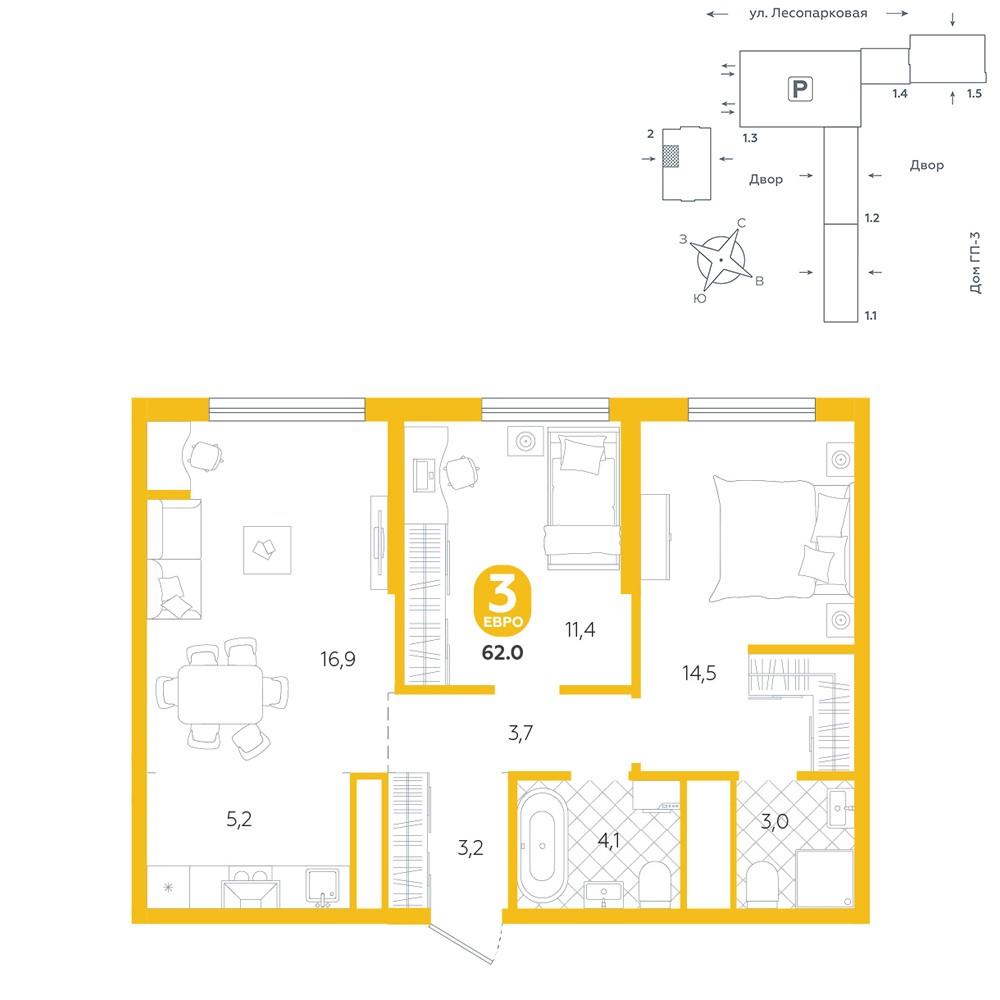 Квартира располагается в ГК «Чистые Пруды» от «Паритет девелопмент». Это флагманский проект компании в Тюмени. <br>Расположение вдали от шумных улиц и оживленного центра создает ощущение жизни на природе и окружает тишиной и спокойствием. Есть вся необходимая социальная и коммерческая инфраструктура: магазины и сфера услуг на первых этажах. Школы, сады, поликлиника, парки в шаговой доступности.<br>Квартал строится в районе Новой Лесобазы. Рядом выезд на объездную, что существенно экономит время. Поездка до центра города на автомобиле занимает 15-20 минут.<br>Городские кварталы «Чистые Пруды»сформирован из домов переменной этажности и многоуровневых паркингов. Ввод 1 очереди строительства запланирован на II кв. 2028 года. <br>Всё благоустройство квартала представлено двумя функциональными зонами: приватная внутри дворовая и общественная. Каждый закрытый двор имеет выход на единую променадную зону - бульвар.<br>Концепция благоустройства основана на принципе модульности, что формирует основную идею приватности. Приватность проекта подчеркивает его особенный климат внутри. Модульное благоустройство позволит максимально эффективно использовать пространство двора и удовлетворить потребности различных категорий жителей.<br>В квартирах базово выполнена улучшенная черновая отделка, которая включает в себя: выровненные стены, стяжка пола с шумоизоляцией, горизонтальная разводка отопления, установлены счетчики с телеметрией, окна с 5-камерным профилем и надежные входные двери.<br>При желании можно добавить ремонт от застройщика и включить его в стоимость ипотеки, что позволит сэкономить на стройматериалах и переехать сразу после получения ключей. <br>Характеристики квартиры:<br>этаж - 24<br>количество комнат - 3<br>номер помещения - 230<br>площадь квартиры - 62 кв.м<br>Гармоничные пропорции и большие окна наполняют пространство светом, создавая уютную атмосферу. Умное зонирование позволяет удобно организовать как рабочую, так и жилую зоны, что особенно важно для современных жителей. Санузел спроектирован с учетом всех потребностей: здесь есть ванна и место для стиральной машины. Каждый метр квартиры используется с максимальной эффективностью, что делает эту планировку отличным выбором для тех, кто ценит комфорт и удобство. |