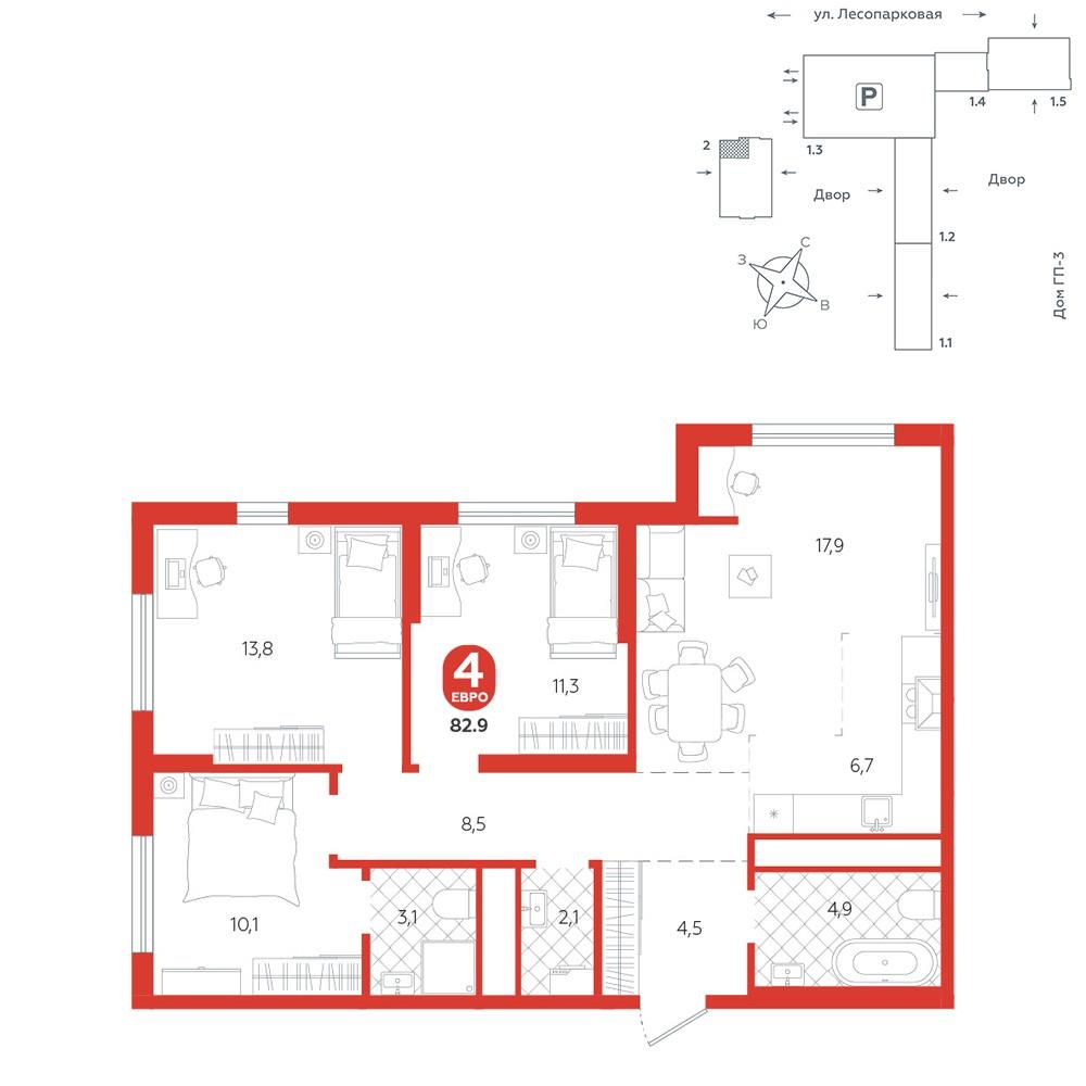 Квартира располагается в ГК «Чистые Пруды» от «Паритет девелопмент». Это флагманский проект компании в Тюмени. <br>Расположение вдали от шумных улиц и оживленного центра создает ощущение жизни на природе и окружает тишиной и спокойствием. Есть вся необходимая социальная и коммерческая инфраструктура: магазины и сфера услуг на первых этажах. Школы, сады, поликлиника, парки в шаговой доступности.<br>Квартал строится в районе Новой Лесобазы. Рядом выезд на объездную, что существенно экономит время. Поездка до центра города на автомобиле занимает 15-20 минут.<br>Городские кварталы «Чистые Пруды»сформирован из домов переменной этажности и многоуровневых паркингов. Ввод 1 очереди строительства запланирован на II кв. 2028 года. <br>Всё благоустройство квартала представлено двумя функциональными зонами: приватная внутри дворовая и общественная. Каждый закрытый двор имеет выход на единую променадную зону - бульвар.<br>Концепция благоустройства основана на принципе модульности, что формирует основную идею приватности. Приватность проекта подчеркивает его особенный климат внутри. Модульное благоустройство позволит максимально эффективно использовать пространство двора и удовлетворить потребности различных категорий жителей.<br>В квартирах базово выполнена улучшенная черновая отделка, которая включает в себя: выровненные стены, стяжка пола с шумоизоляцией, горизонтальная разводка отопления, установлены счетчики с телеметрией, окна с 5-камерным профилем и надежные входные двери.<br>При желании можно добавить ремонт от застройщика и включить его в стоимость ипотеки, что позволит сэкономить на стройматериалах и переехать сразу после получения ключей. <br>Характеристики квартиры:<br>этаж - 24<br>количество комнат - 4<br>номер помещения - 231<br>площадь квартиры - 82,9 кв.м<br>Гармоничные пропорции и большие окна наполняют пространство светом, создавая уютную атмосферу. Умное зонирование позволяет удобно организовать как рабочую, так и жилую зоны, что особенно важно для современных жителей. Санузел спроектирован с учетом всех потребностей: здесь есть ванна и место для стиральной машины. Каждый метр квартиры используется с максимальной эффективностью, что делает эту планировку отличным выбором для тех, кто ценит комфорт и удобство. |