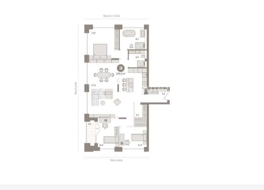 Трехкомнатная квартира 120,20 м2 по ул. Первомайская 1Аблок2 за 26500000 руб. |