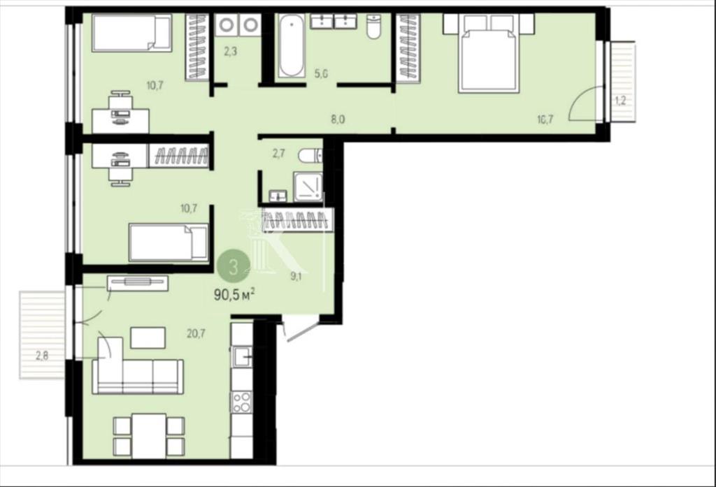 Трехкомнатная |