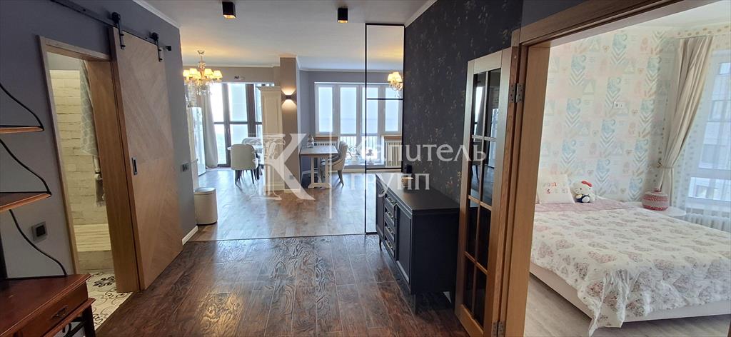 Просторная кухня-гостиная, зона отдыха у панорамного окна. Две изолированные спальни, гардеробная, санузел с душевой кабиной. <br />