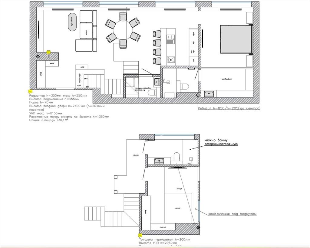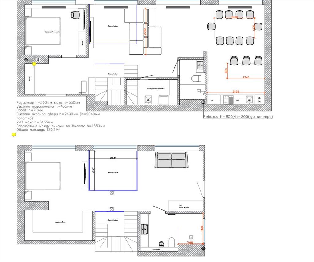 общая 130 м2, жилая 60 м2, кухни 30 м2 |